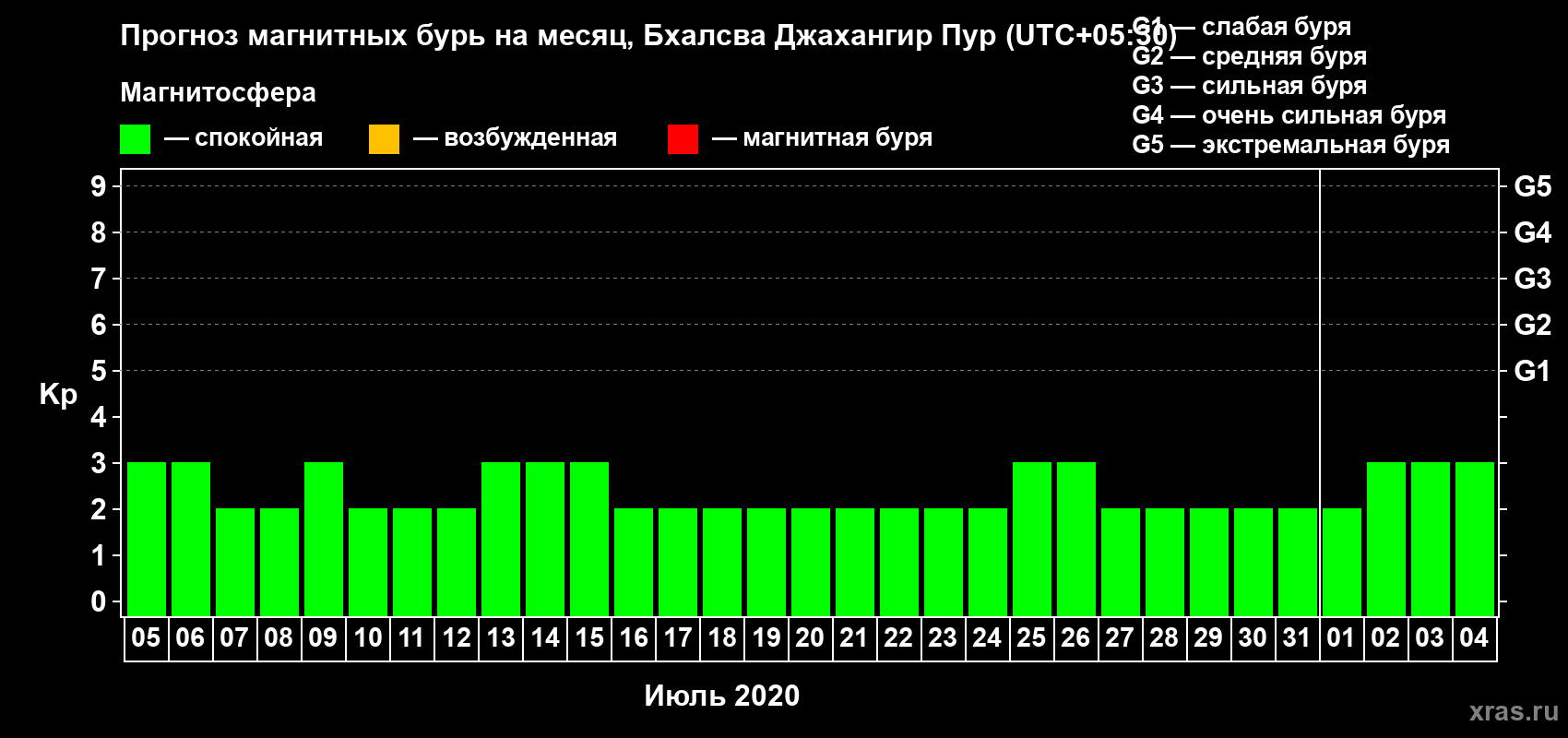 Прогноз магнитных бурь в Бхалсва Джахангир Пуре — 5 июля 2020 года