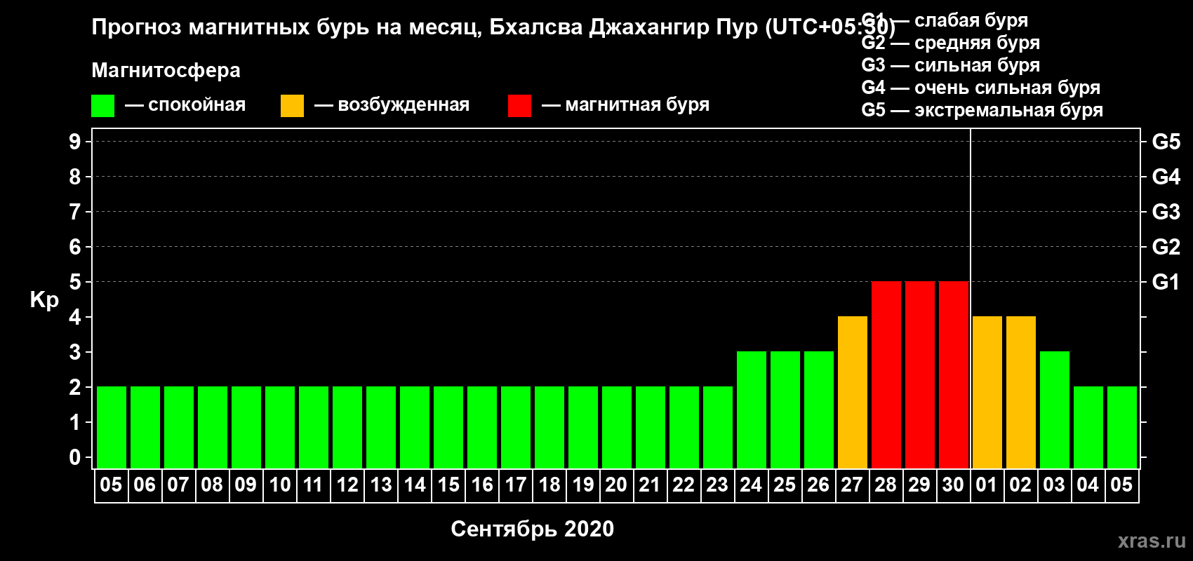 Прогноз магнитных бурь в Бхалсва Джахангир Пуре — 5 сентября 2020 года
