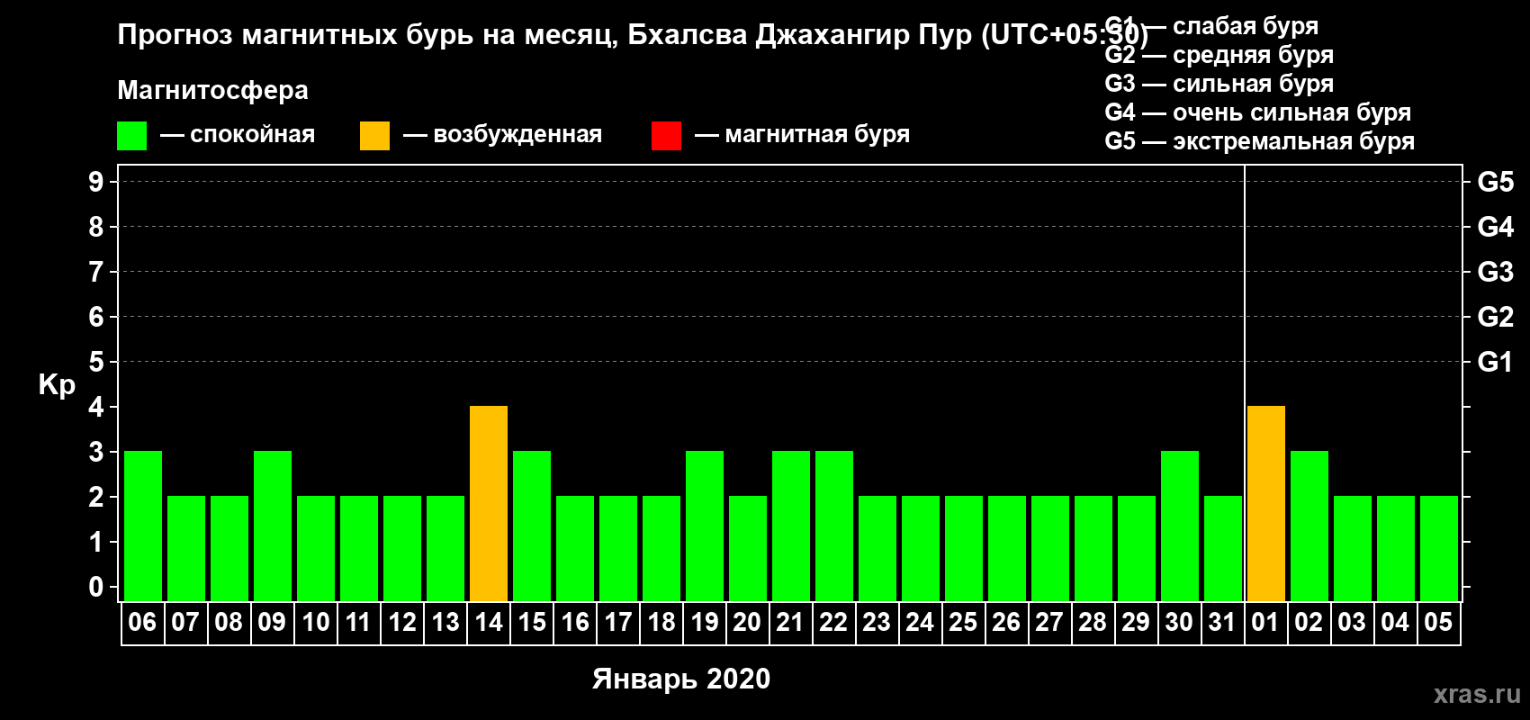 Прогноз магнитных бурь в Бхалсва Джахангир Пуре — 6 января 2020 года