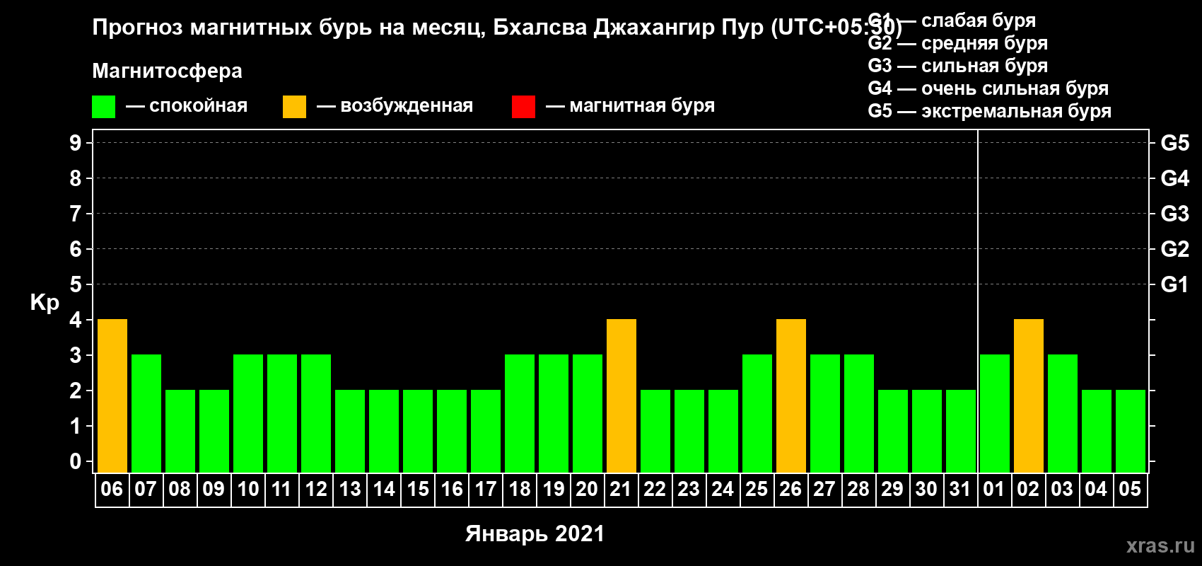 Прогноз магнитных бурь в Бхалсва Джахангир Пуре — 6 января 2021 года
