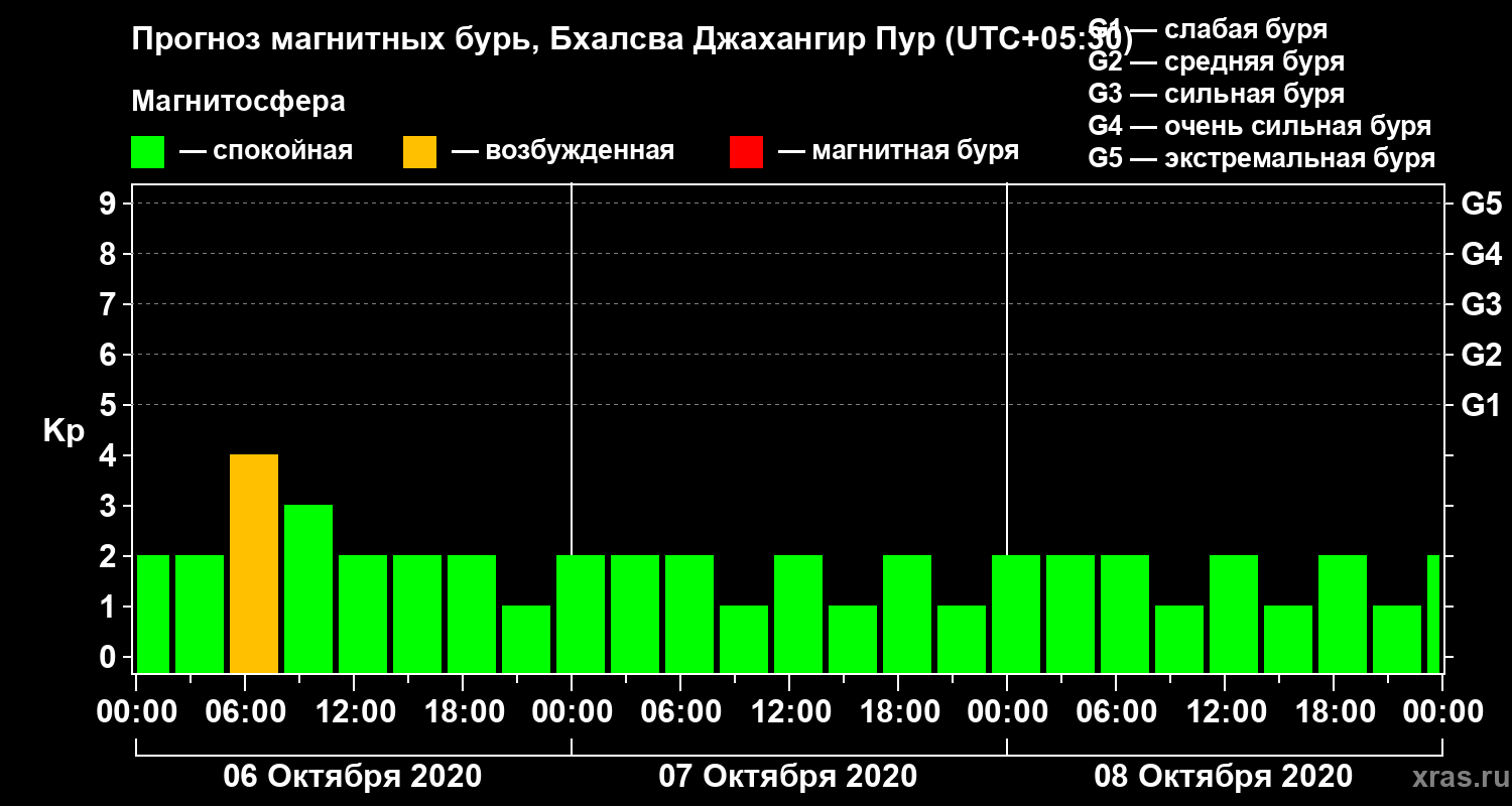 Прогноз магнитных бурь в Бхалсва Джахангир Пуре — 6 октября 2020 года