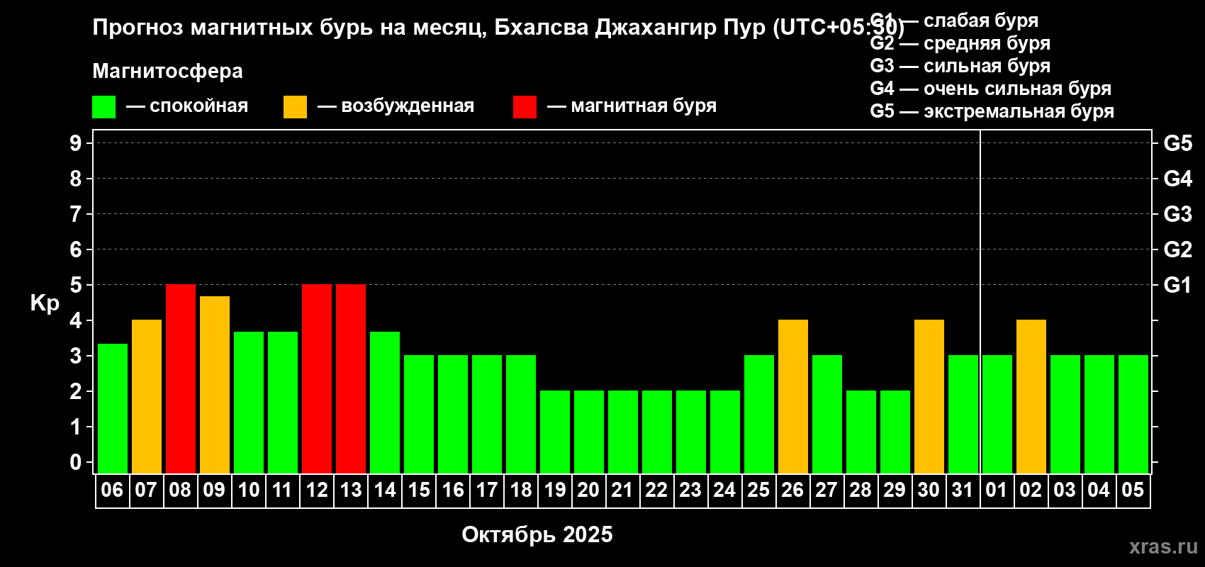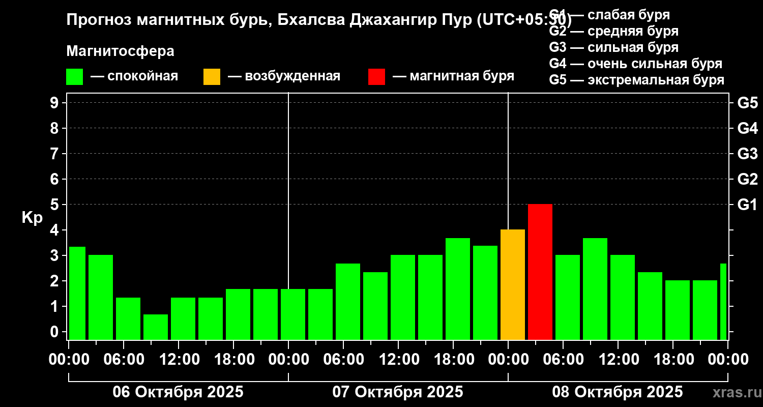 Прогноз магнитных бурь в Бхалсва Джахангир Пуре — 6 октября 2025 года