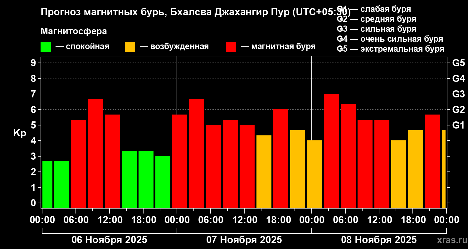 Прогноз магнитных бурь в Бхалсва Джахангир Пуре — 6 ноября 2025 года