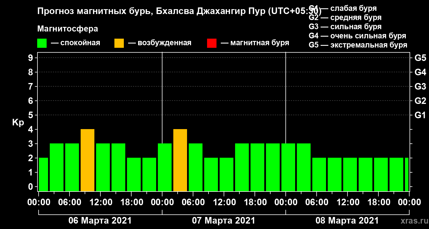 Прогноз магнитных бурь в Бхалсва Джахангир Пуре — 6 марта 2021 года