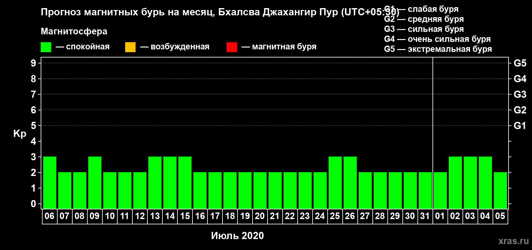 Прогноз магнитных бурь в Бхалсва Джахангир Пуре — 6 июля 2020 года