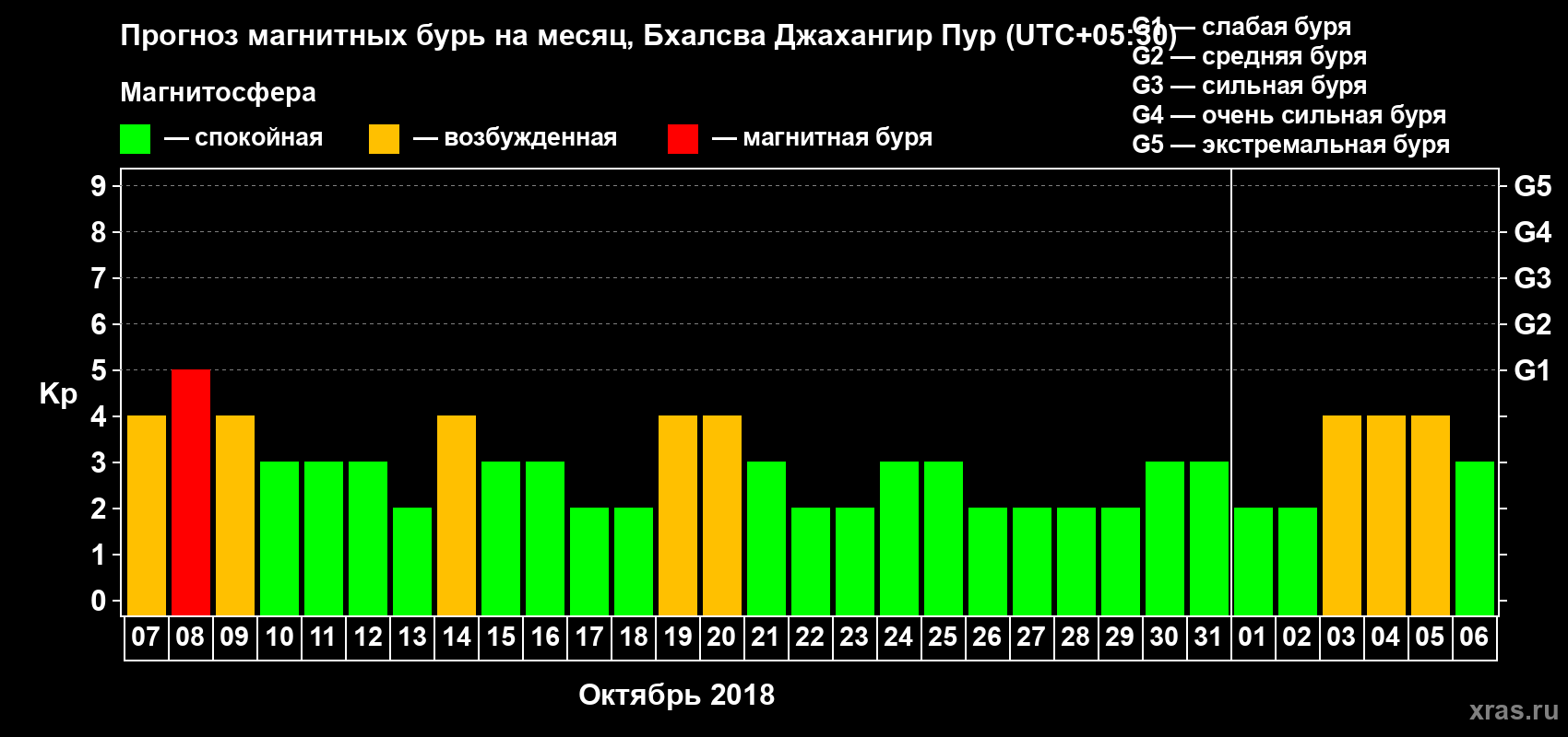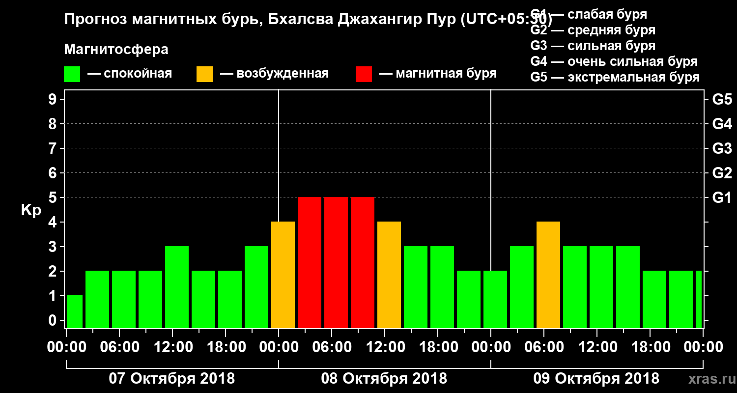 Прогноз магнитных бурь в Бхалсва Джахангир Пуре — 7 октября 2018 года