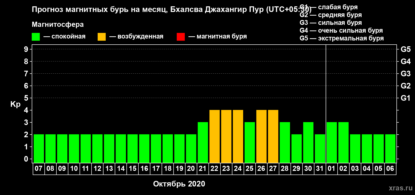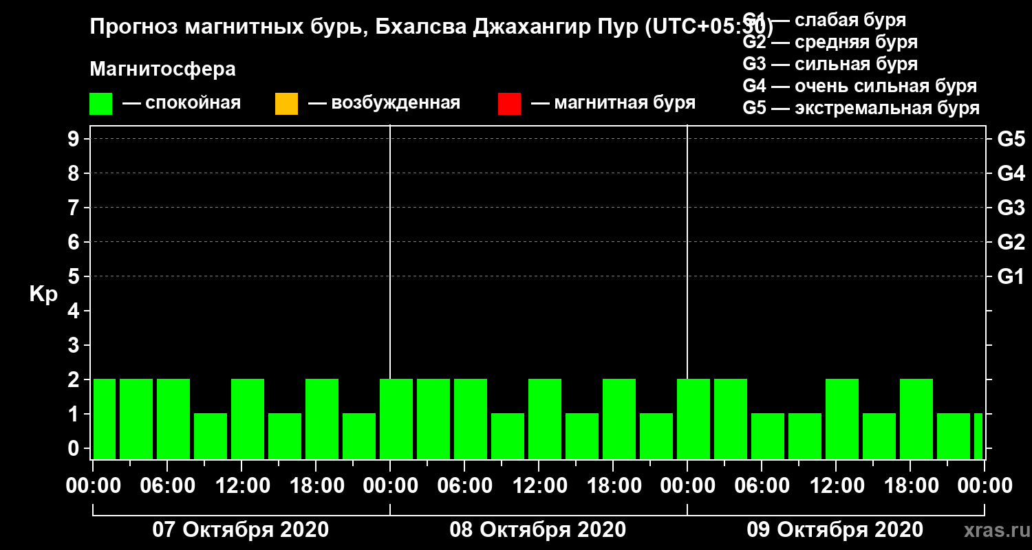 Прогноз магнитных бурь в Бхалсва Джахангир Пуре — 7 октября 2020 года