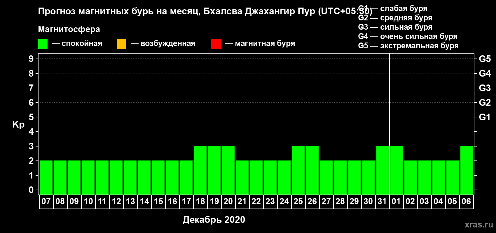 Прогноз магнитных бурь в Бхалсва Джахангир Пуре — 7 декабря 2019 года