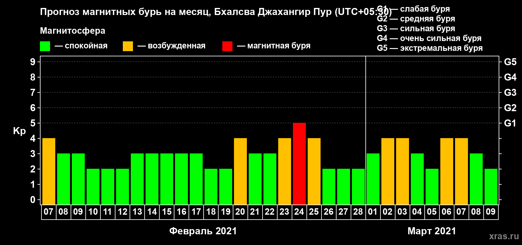 Прогноз магнитных бурь в Бхалсва Джахангир Пуре — 7 февраля 2021 года