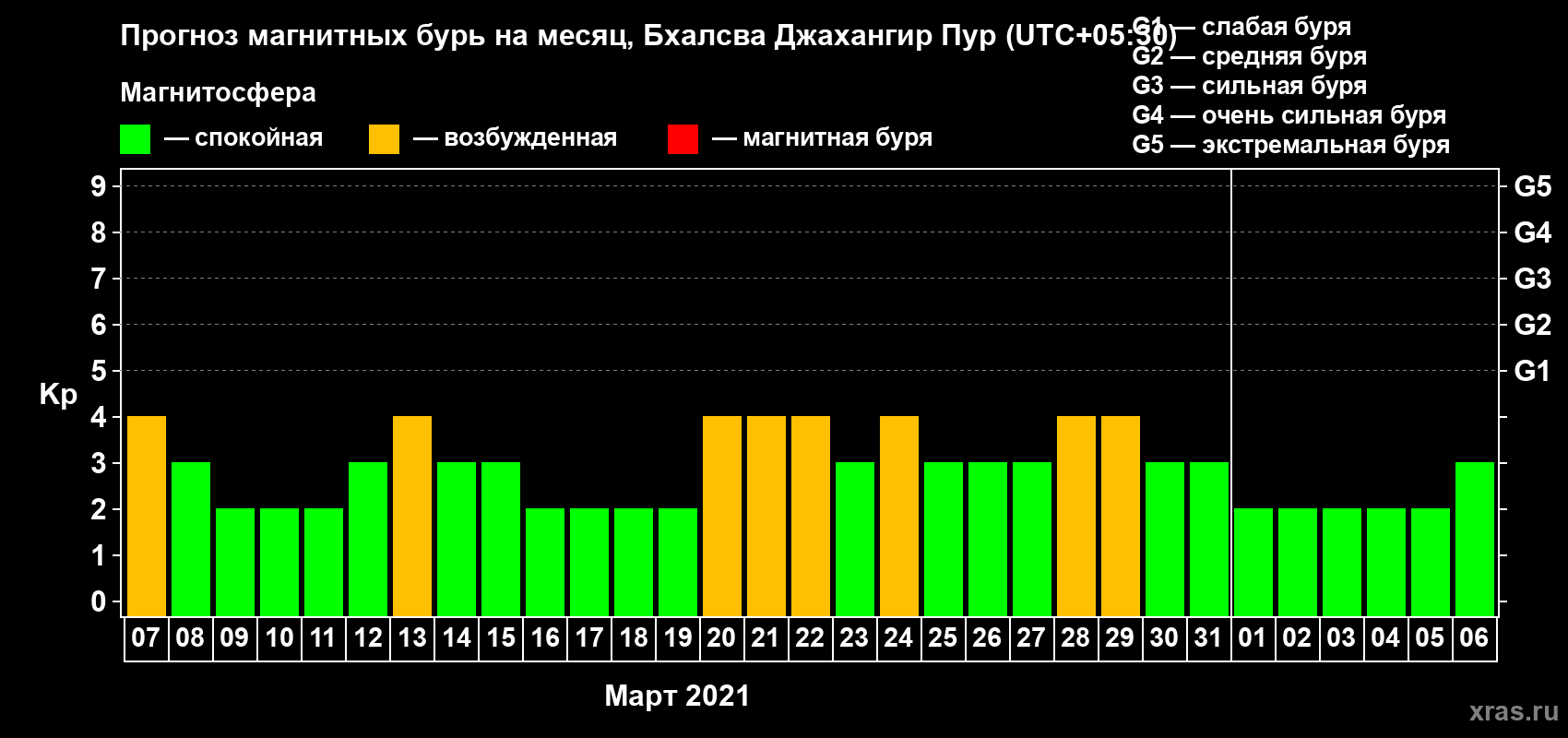 Прогноз магнитных бурь в Бхалсва Джахангир Пуре — 7 марта 2021 года
