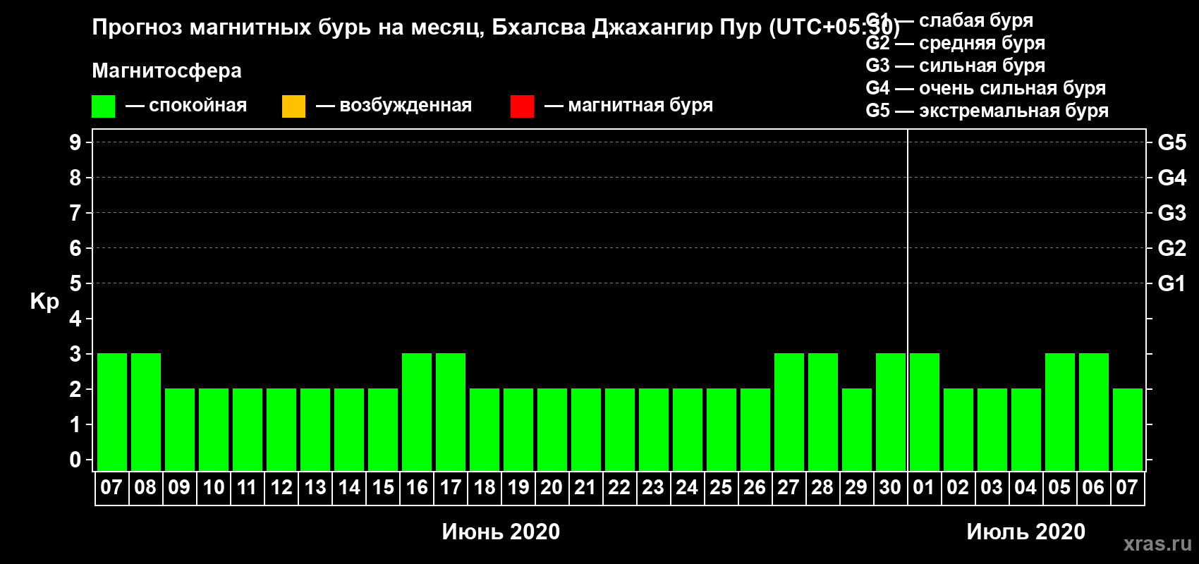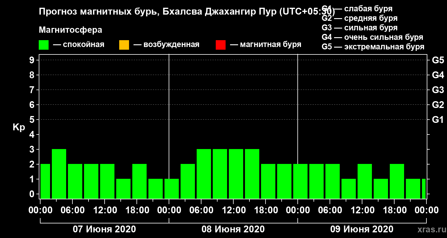 Прогноз магнитных бурь в Бхалсва Джахангир Пуре — 7 июня 2020 года