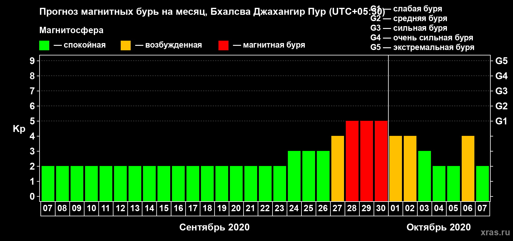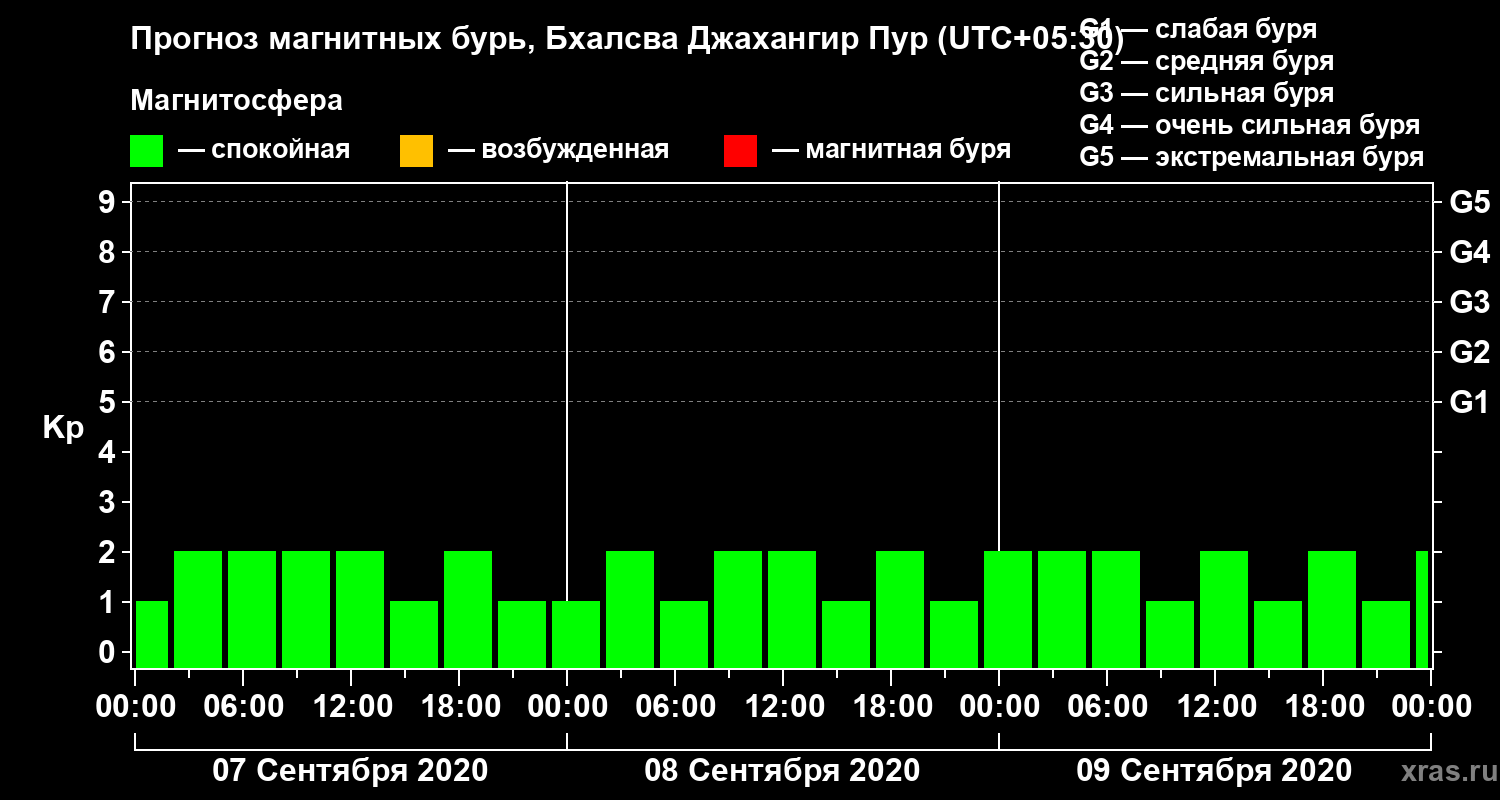 Прогноз магнитных бурь в Бхалсва Джахангир Пуре — 7 сентября 2020 года