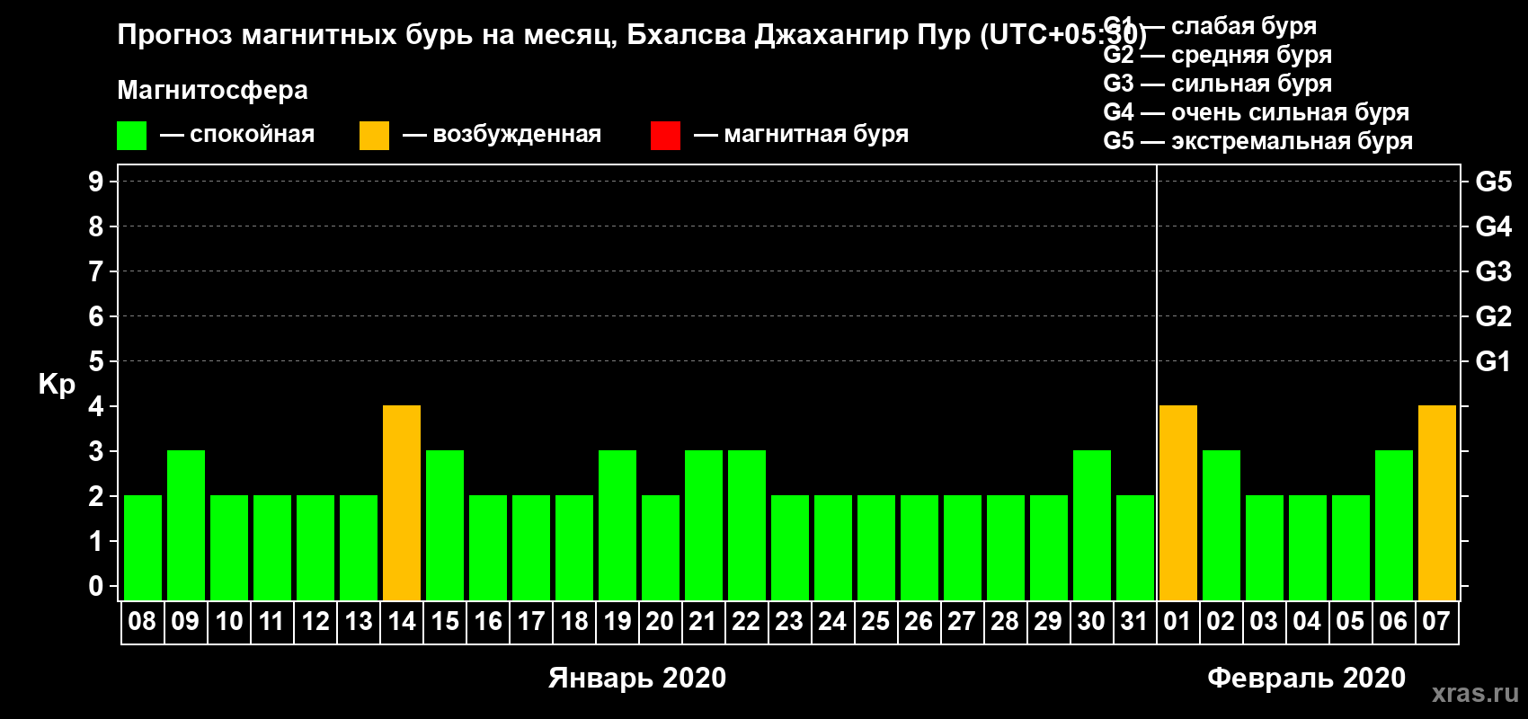 Прогноз магнитных бурь в Бхалсва Джахангир Пуре — 8 января 2020 года
