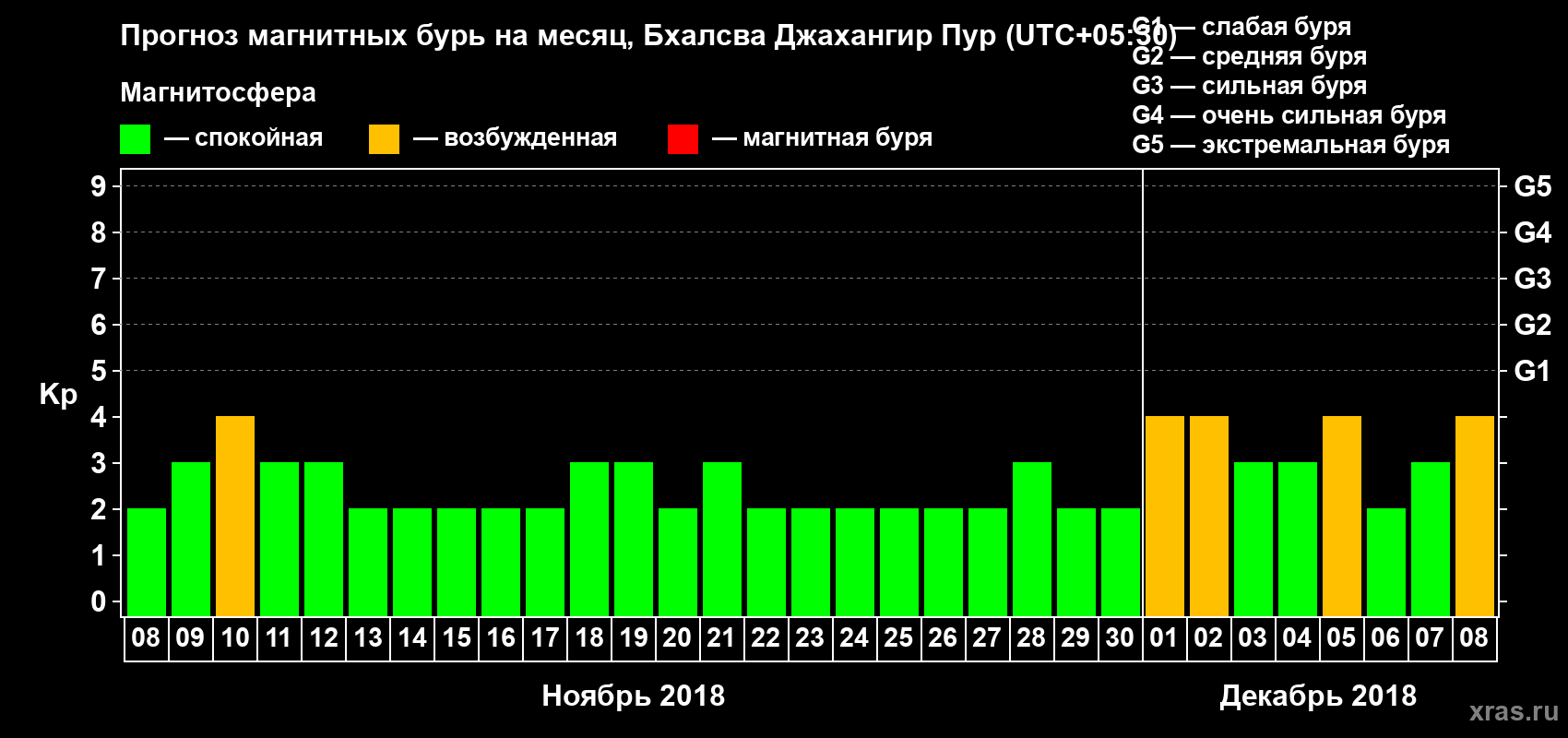 Прогноз магнитных бурь в Бхалсва Джахангир Пуре — 8 ноября 2018 года