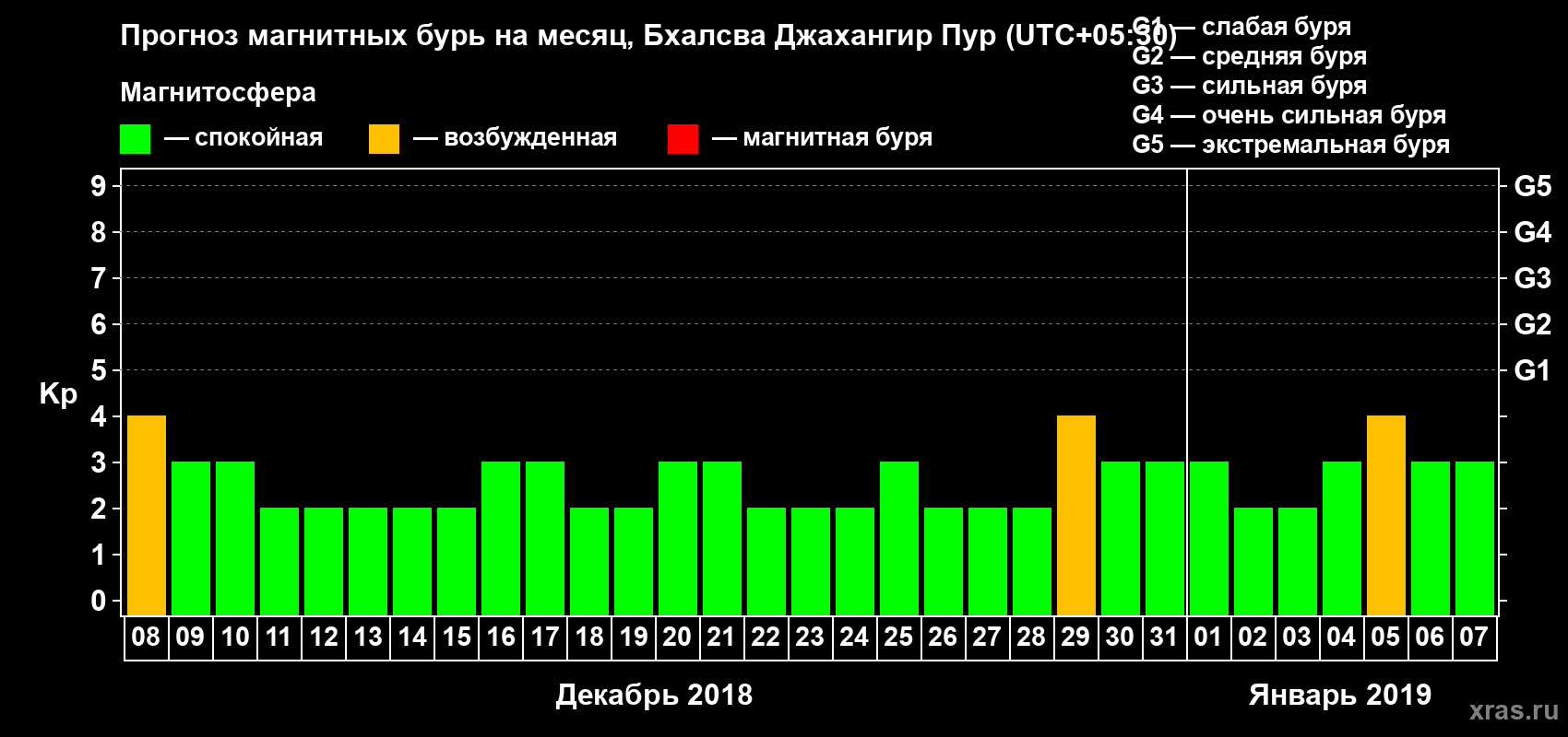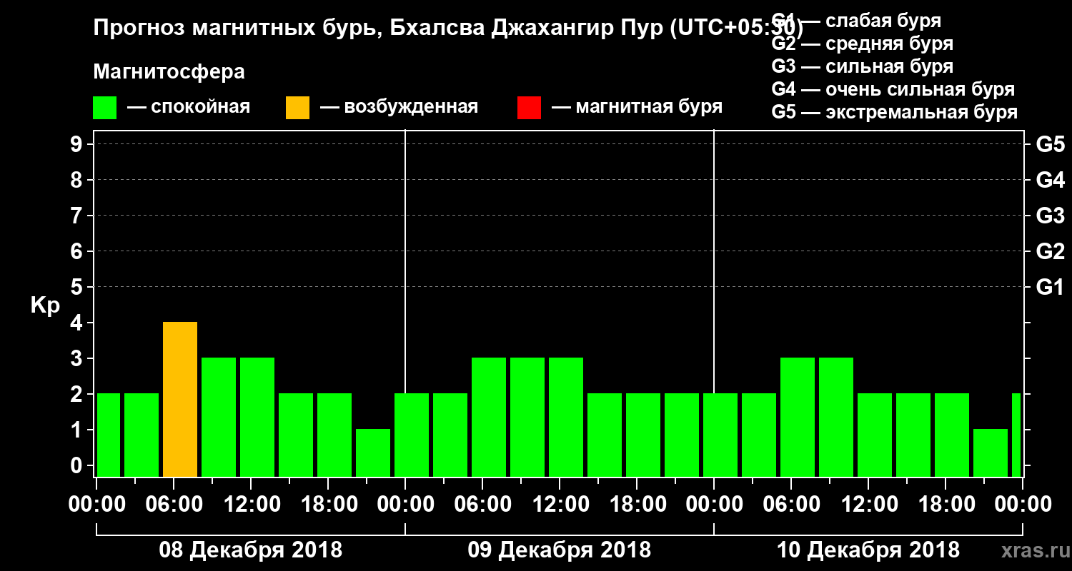 Прогноз магнитных бурь в Бхалсва Джахангир Пуре — 8 декабря 2018 года
