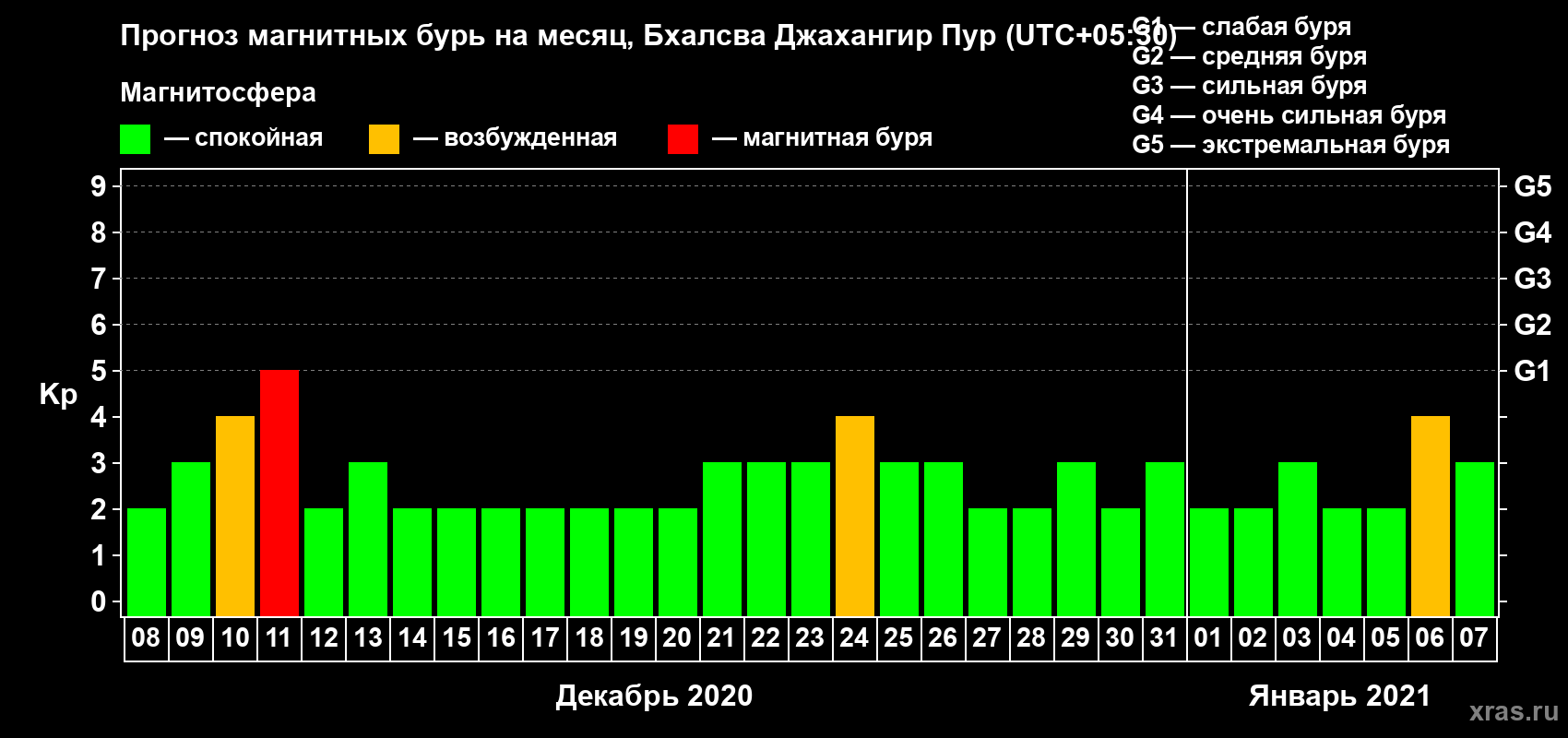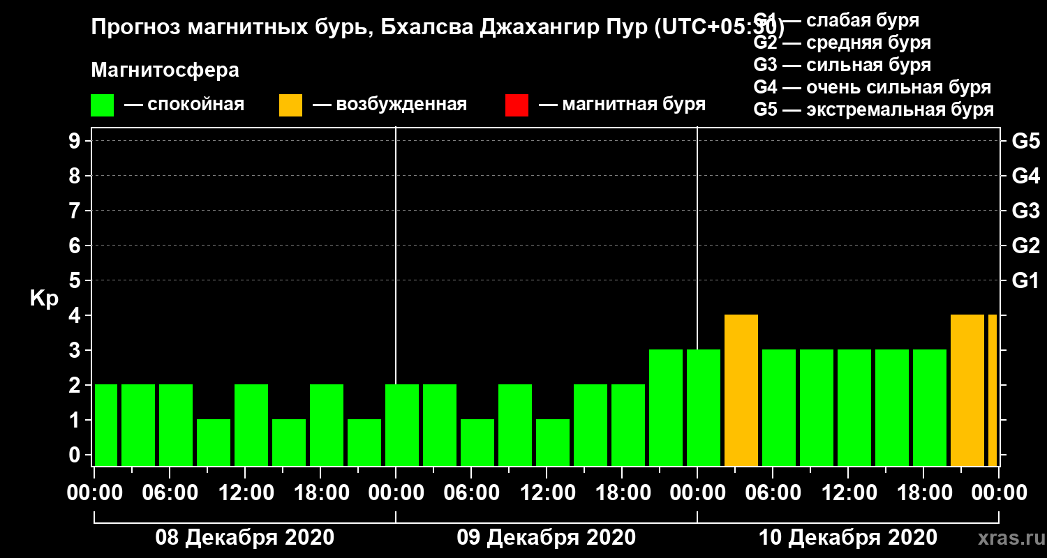 Прогноз магнитных бурь в Бхалсва Джахангир Пуре — 8 декабря 2020 года