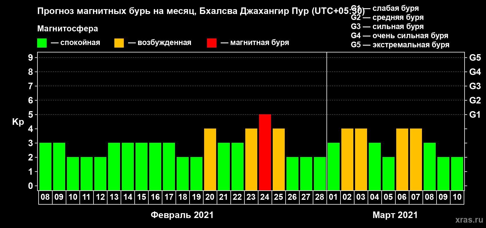 Прогноз магнитных бурь в Бхалсва Джахангир Пуре — 8 февраля 2021 года