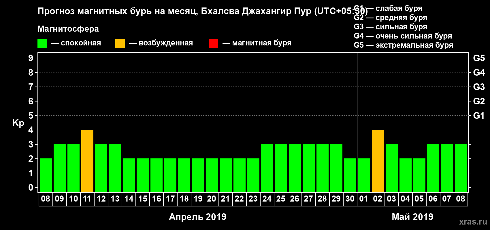 Прогноз магнитных бурь в Бхалсва Джахангир Пуре — 8 апреля 2019 года