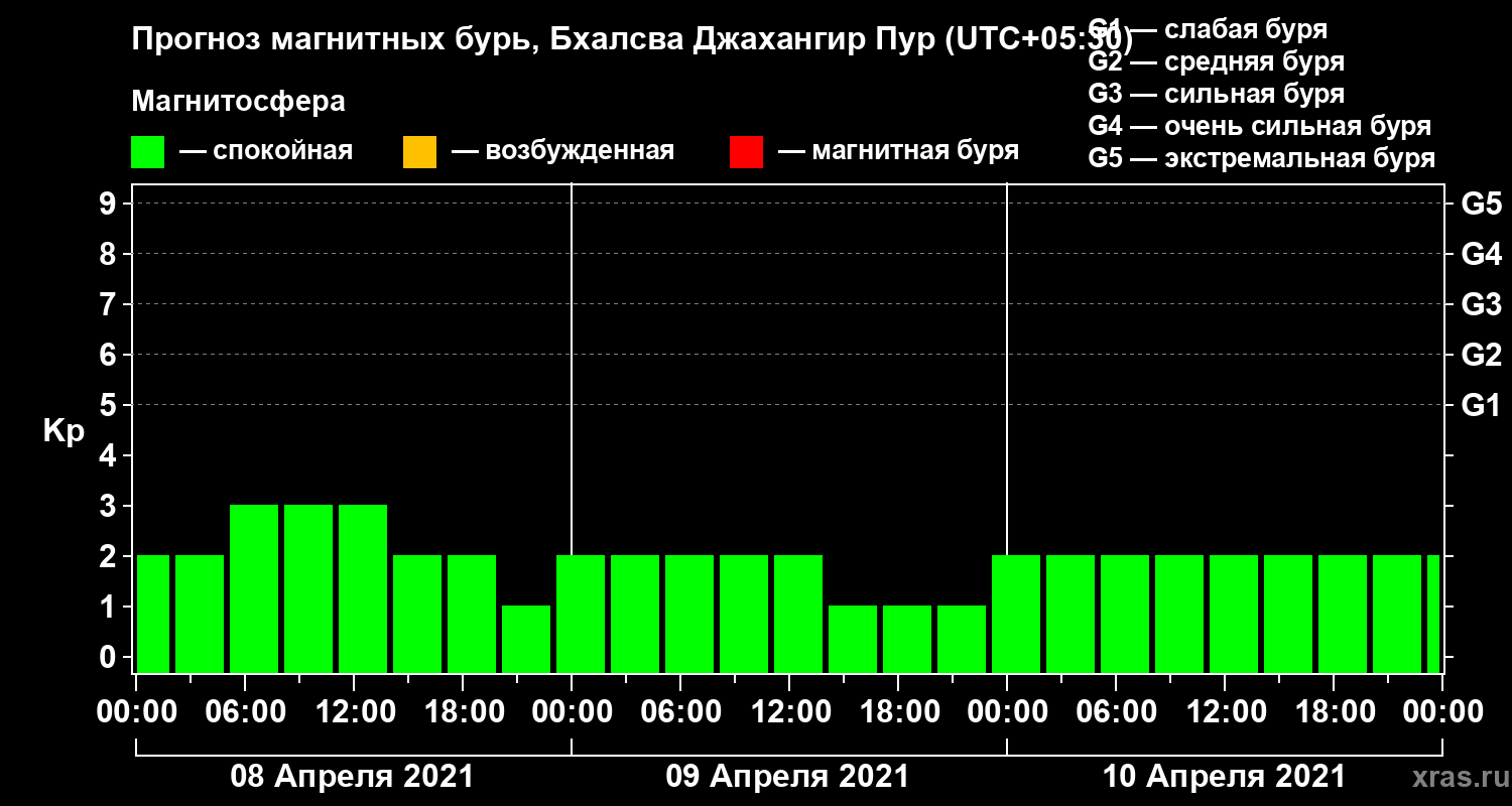 Прогноз магнитных бурь в Бхалсва Джахангир Пуре — 8 апреля 2021 года