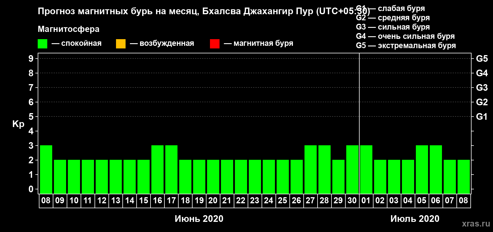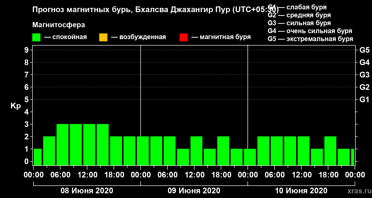 Прогноз магнитных бурь в Бхалсва Джахангир Пуре — 8 июня 2020 года