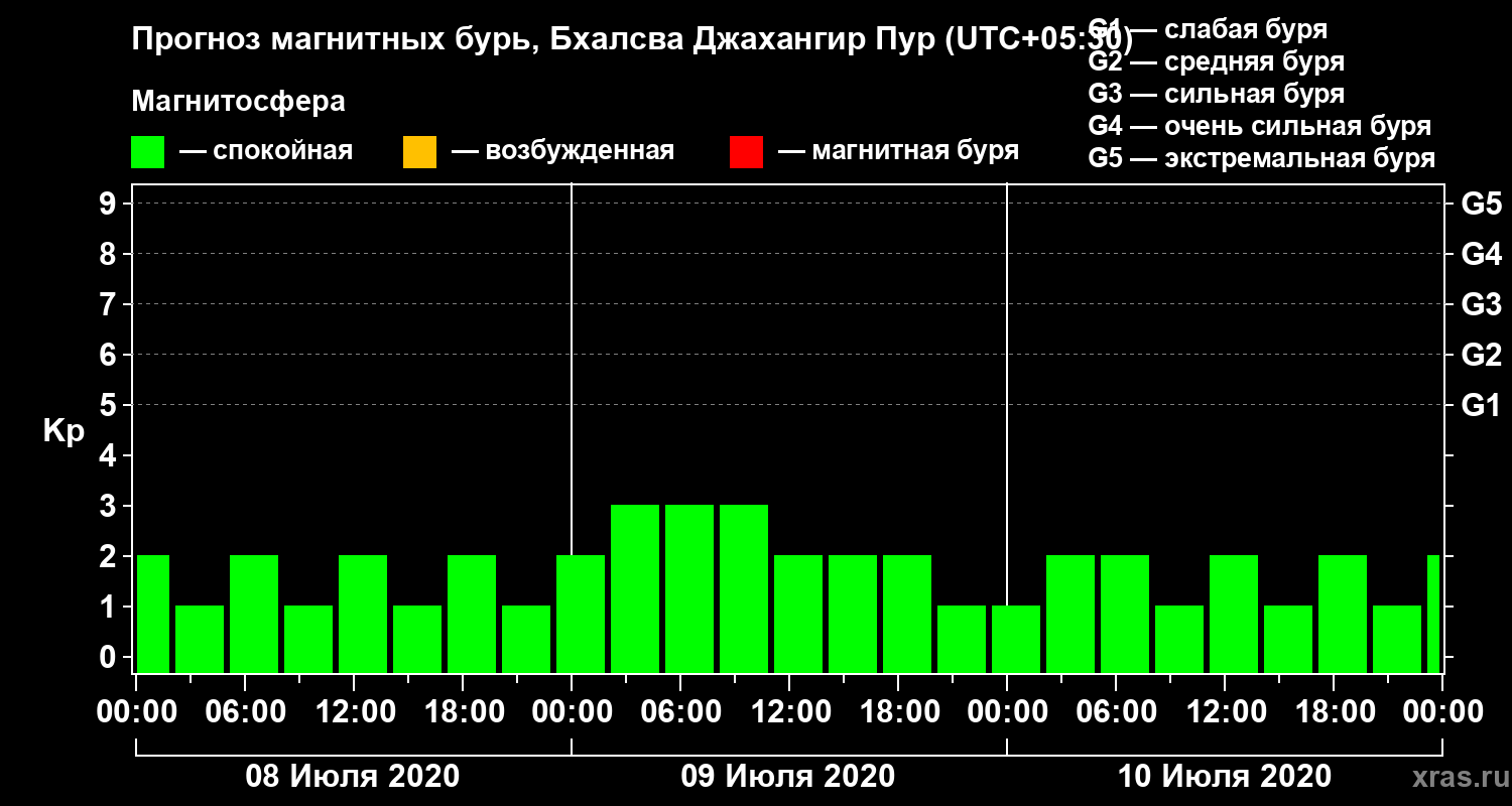 Прогноз магнитных бурь в Бхалсва Джахангир Пуре на 8 июля 2020 года
