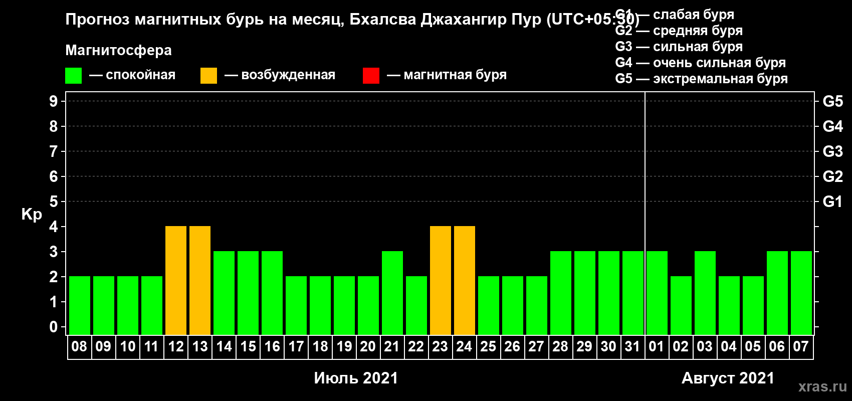 Прогноз магнитных бурь в Бхалсва Джахангир Пуре — 8 июля 2021 года