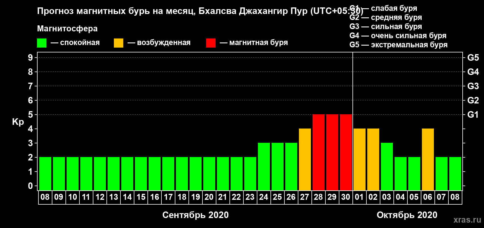 Прогноз магнитных бурь в Бхалсва Джахангир Пуре — 8 сентября 2020 года