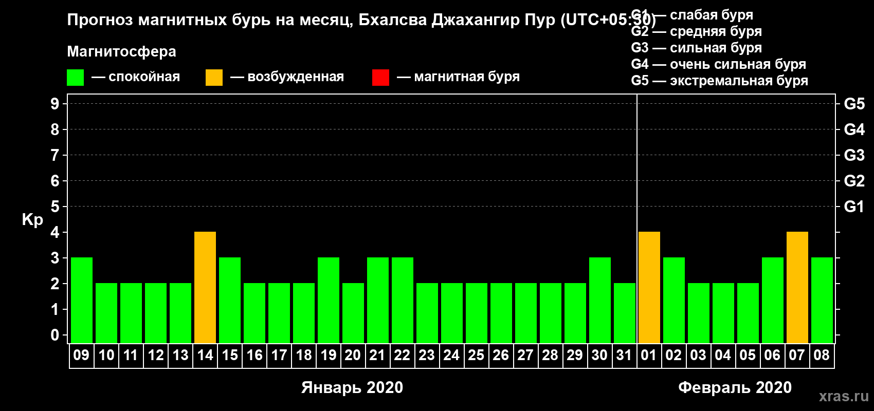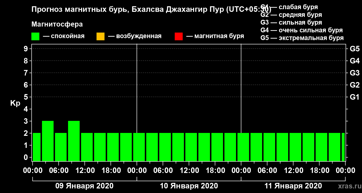 Прогноз магнитных бурь в Бхалсва Джахангир Пуре — 9 января 2020 года