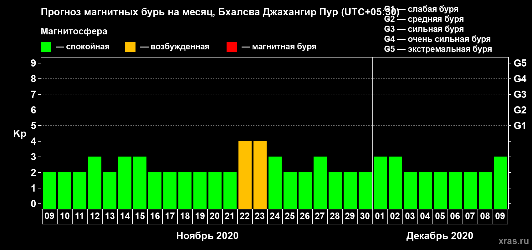 Прогноз магнитных бурь в Бхалсва Джахангир Пуре — 9 ноября 2020 года