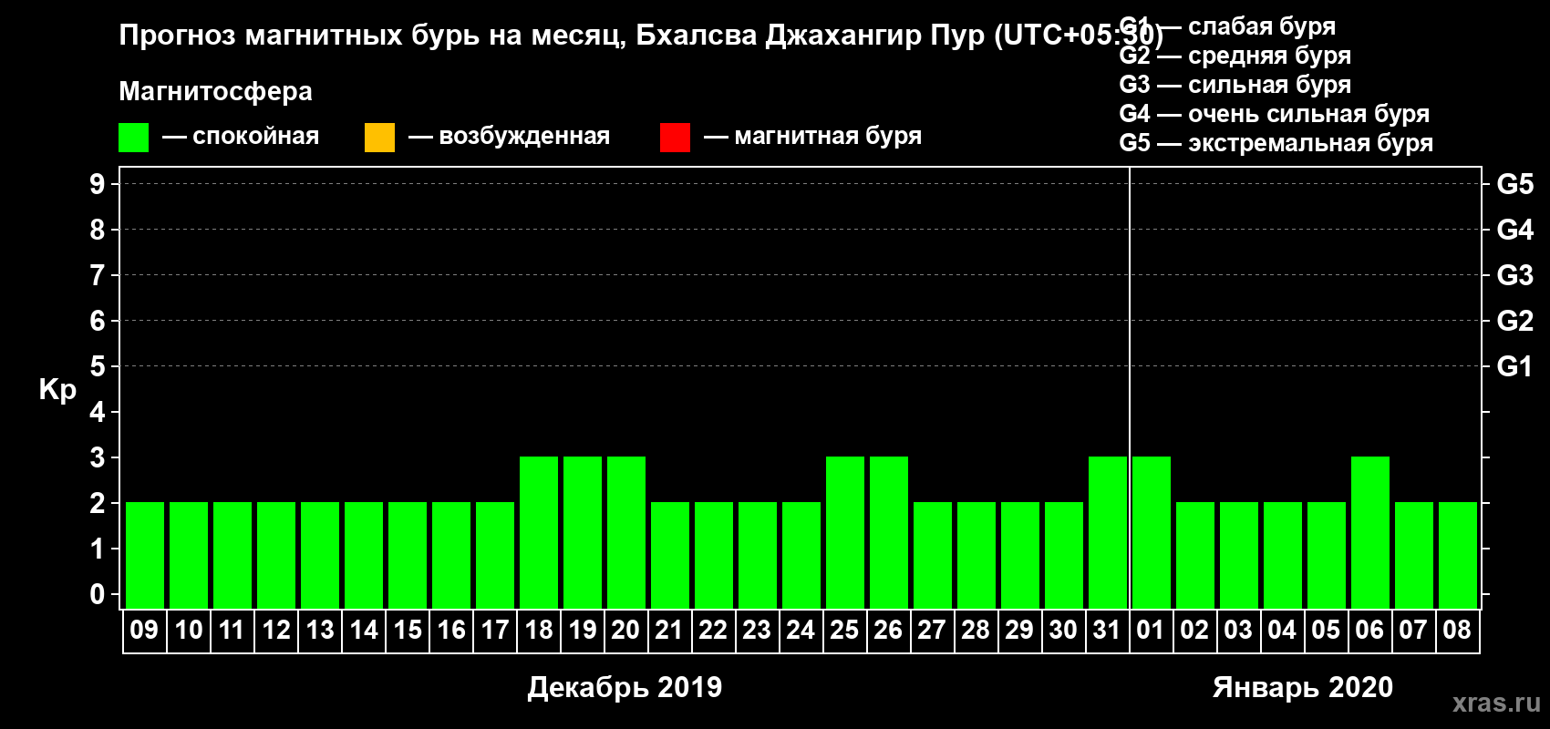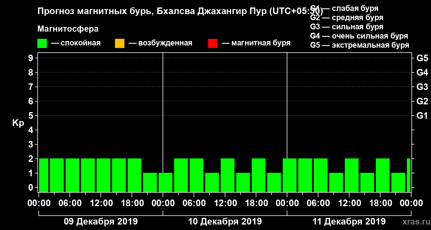 Прогноз магнитных бурь в Бхалсва Джахангир Пуре — 9 декабря 2019 года