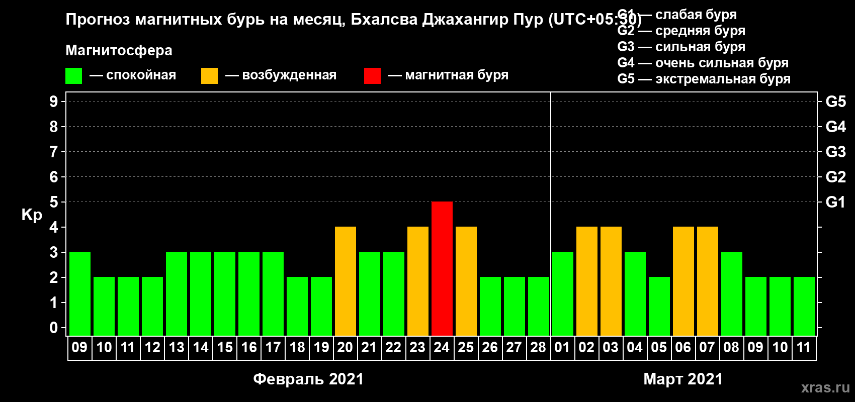 Прогноз магнитных бурь в Бхалсва Джахангир Пуре — 9 февраля 2021 года