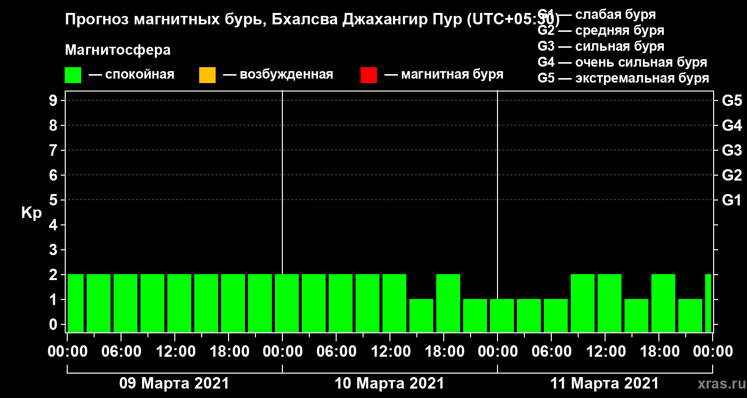 Прогноз магнитных бурь в Бхалсва Джахангир Пуре — 9 марта 2021 года