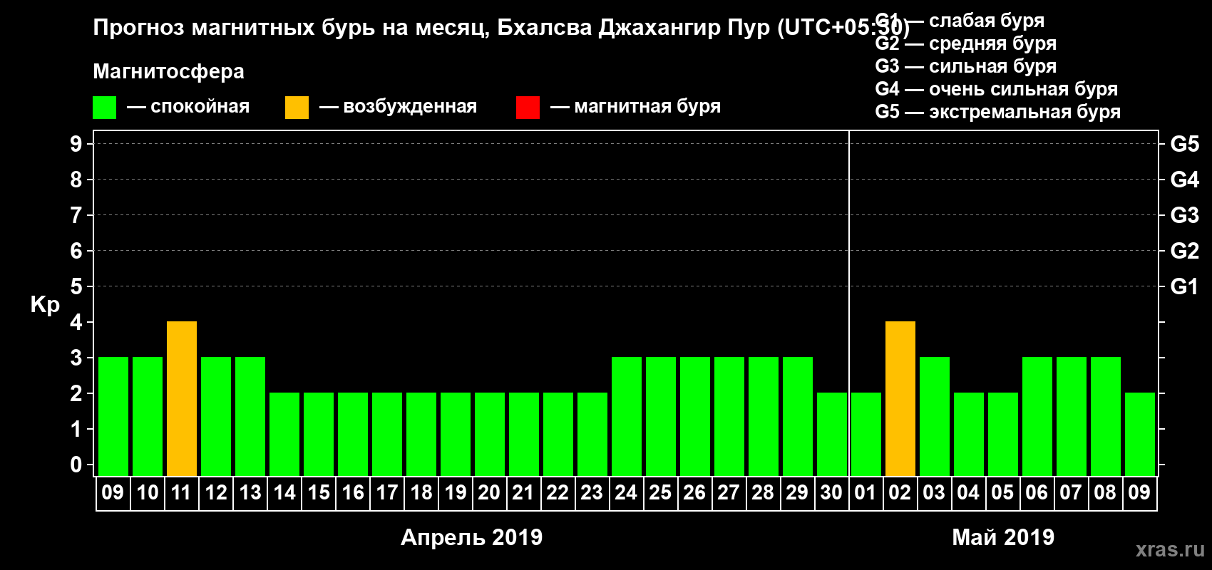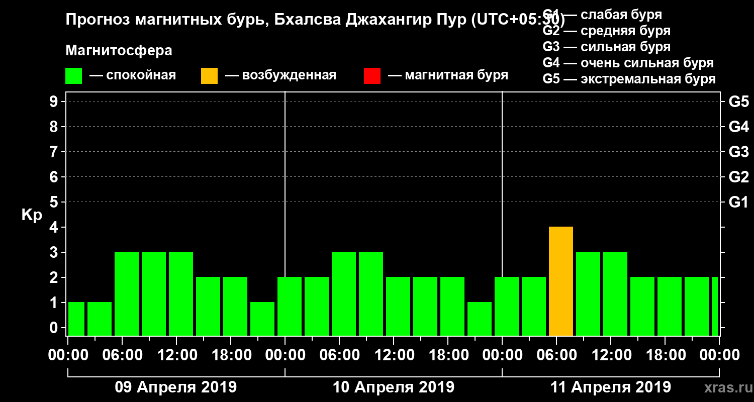 Прогноз магнитных бурь в Бхалсва Джахангир Пуре — 9 апреля 2019 года