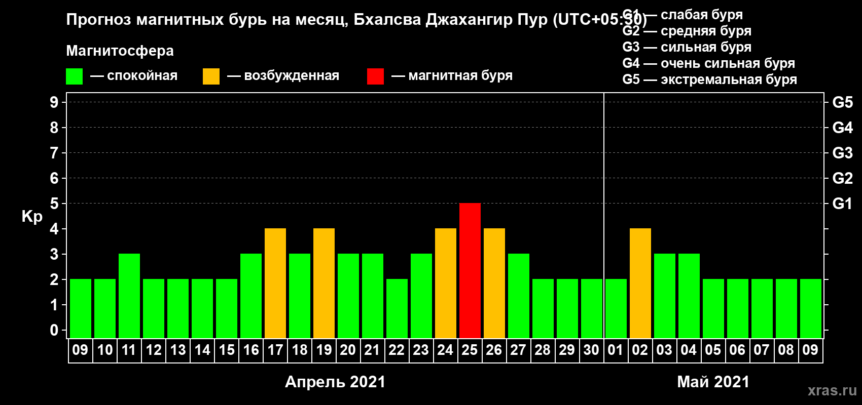 Прогноз магнитных бурь в Бхалсва Джахангир Пуре — 9 апреля 2021 года
