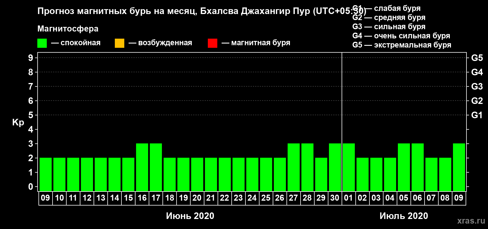 Прогноз магнитных бурь в Бхалсва Джахангир Пуре — 9 июня 2020 года