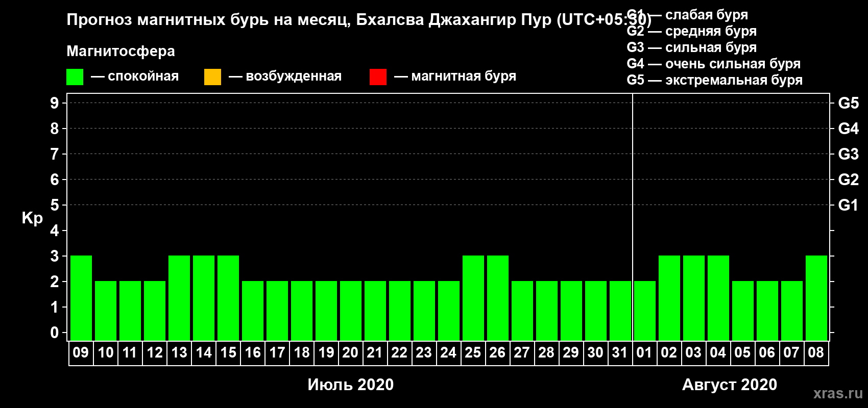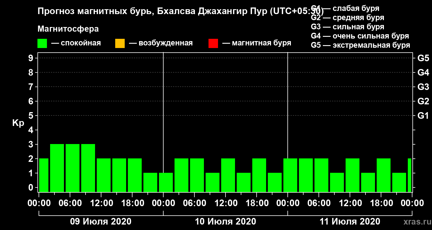 Прогноз магнитных бурь в Бхалсва Джахангир Пуре — 9 июля 2020 года