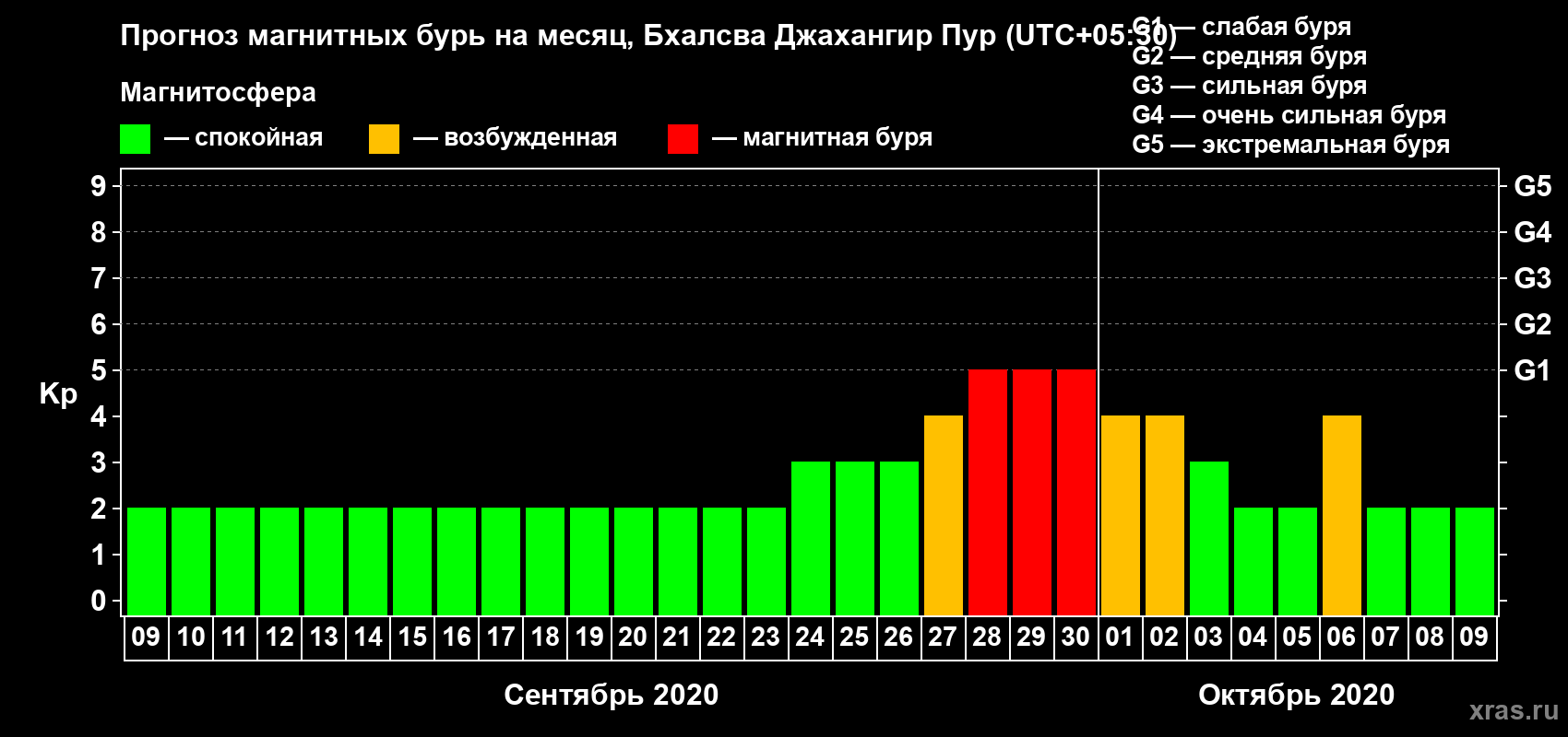Прогноз магнитных бурь в Бхалсва Джахангир Пуре — 9 сентября 2020 года