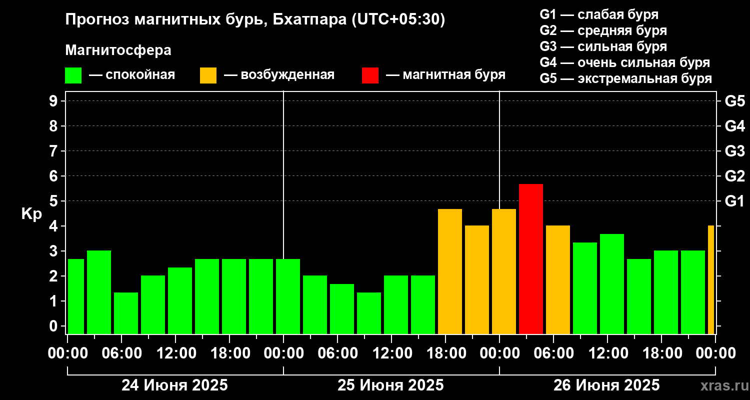 Прогноз магнитных бурь в Бхатпаре — 24 июня 2025 года