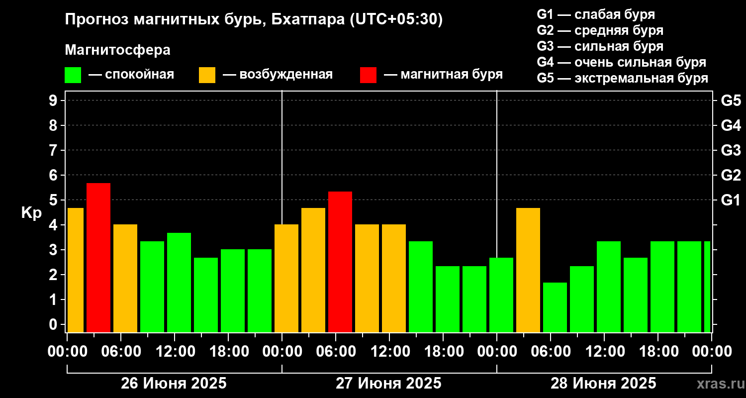 Прогноз магнитных бурь в Бхатпаре — 26 июня 2025 года