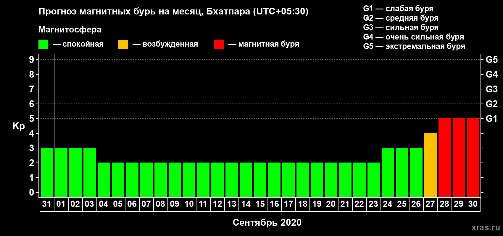Прогноз магнитных бурь в Бхатпаре — 31 августа 2020 года