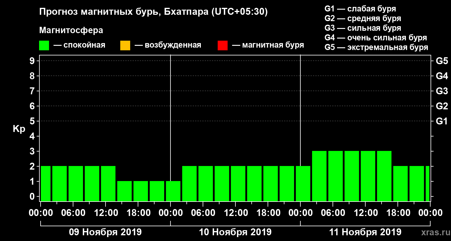 Прогноз магнитных бурь в Бхатпаре — 9 ноября 2019 года