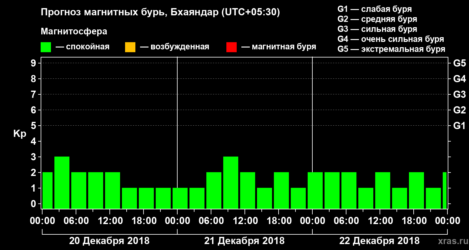 Прогноз магнитных бурь в Бхаяндаре на 20 декабря 2018 года