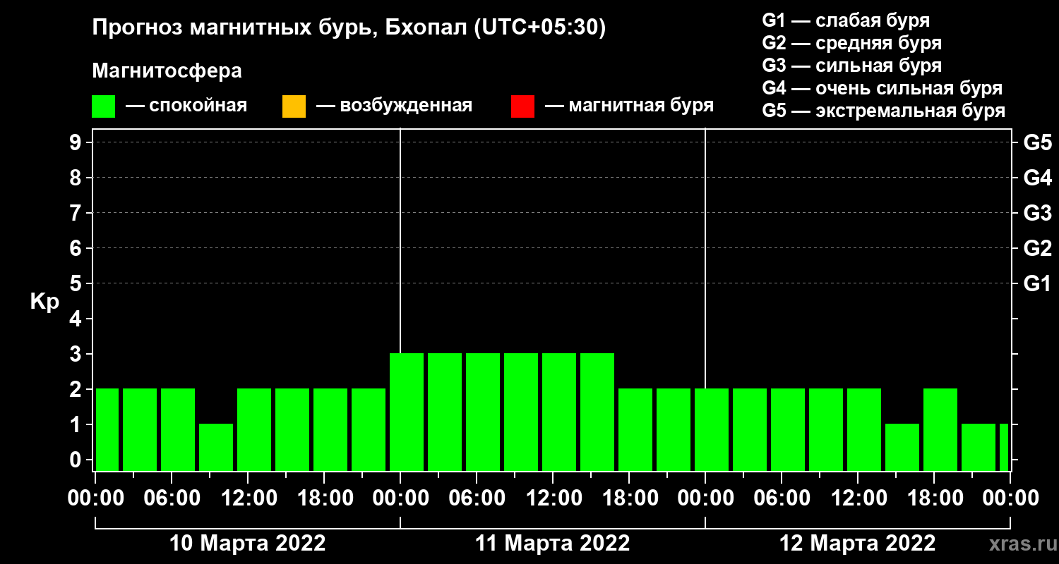 Прогноз магнитных бурь в Бхопале — 10 марта 2022 года