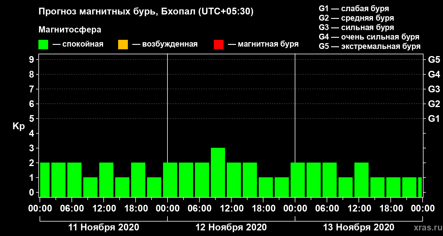 Прогноз магнитных бурь в Бхопале — 11 ноября 2020 года