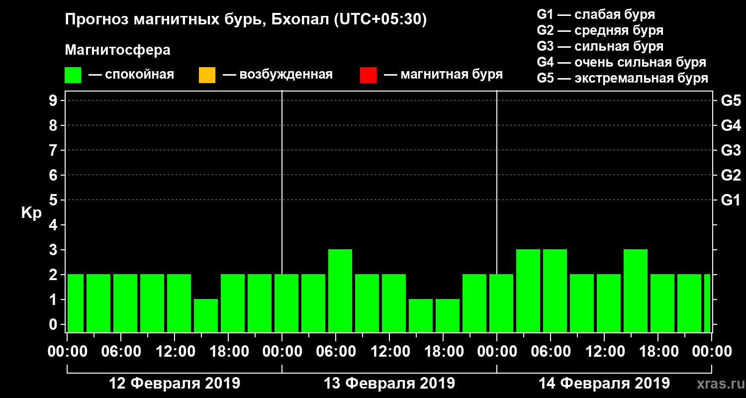 Прогноз магнитных бурь в Бхопале — 12 февраля 2019 года