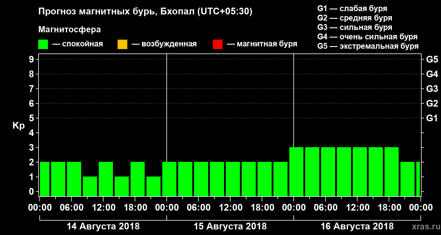 Прогноз магнитных бурь в Бхопале — 14 августа 2018 года