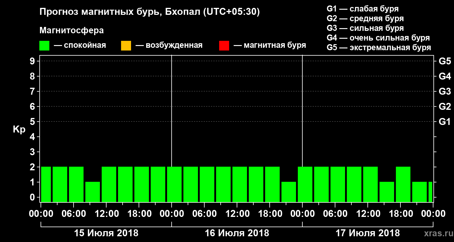 Прогноз магнитных бурь в Бхопале — 15 июля 2018 года