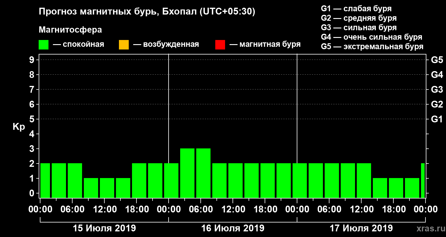 Прогноз магнитных бурь в Бхопале — 15 июля 2019 года