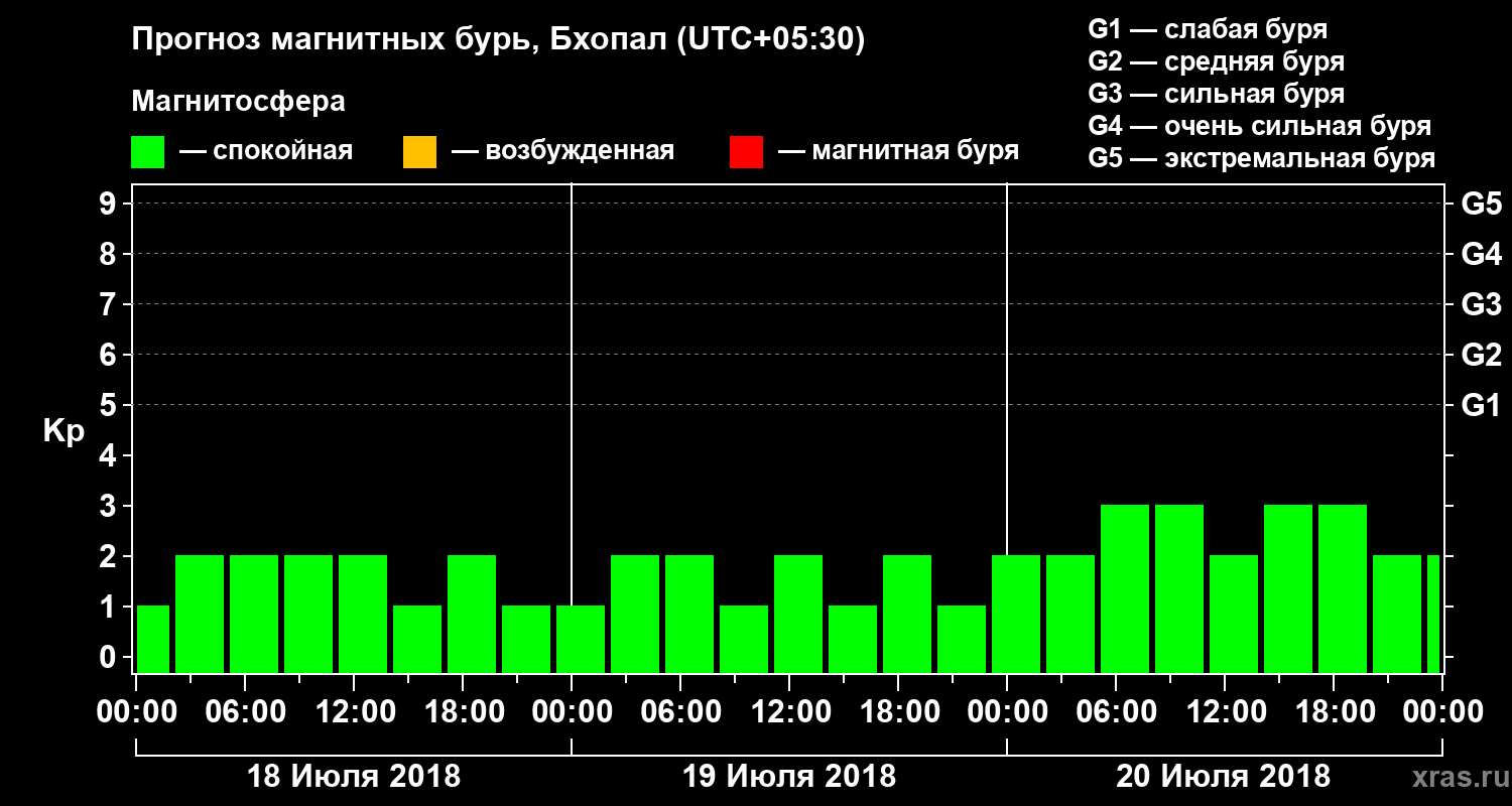 Прогноз магнитных бурь в Бхопале — 18 июля 2018 года