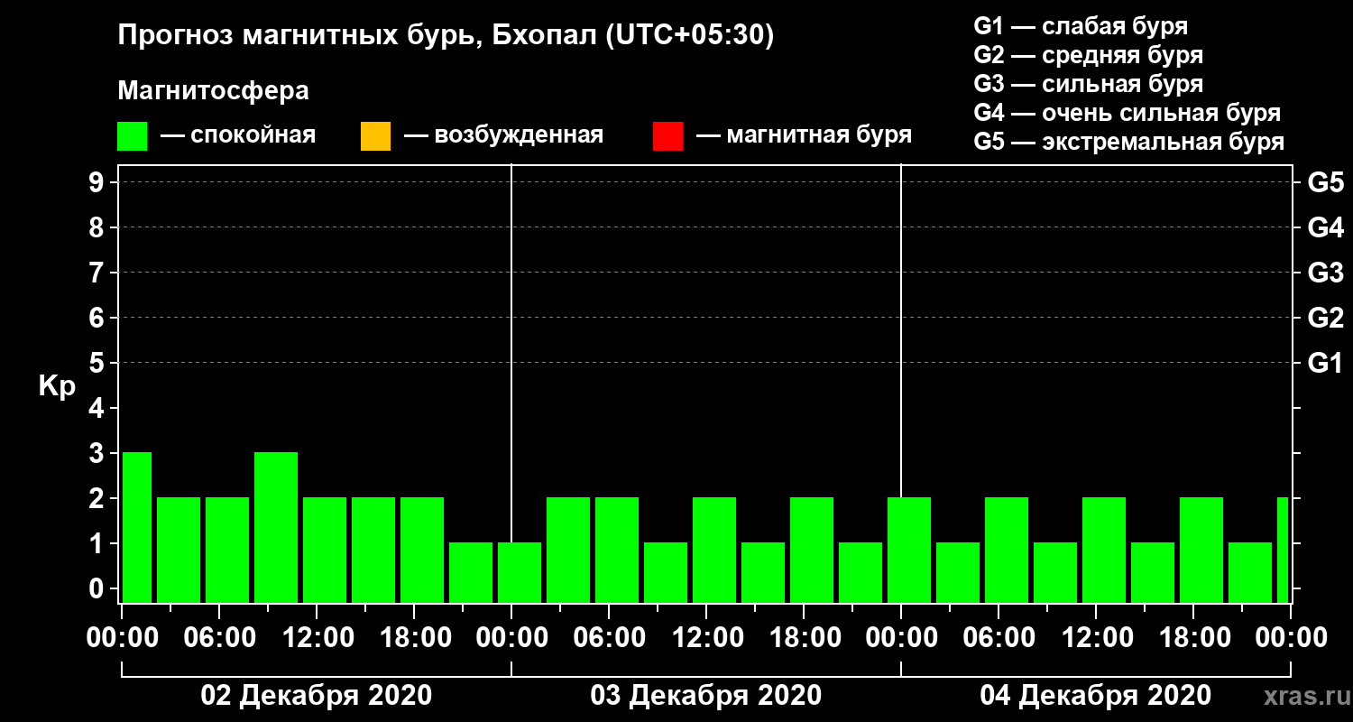 Прогноз магнитных бурь в Бхопале — 2 декабря 2020 года